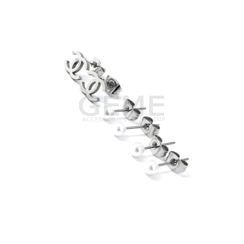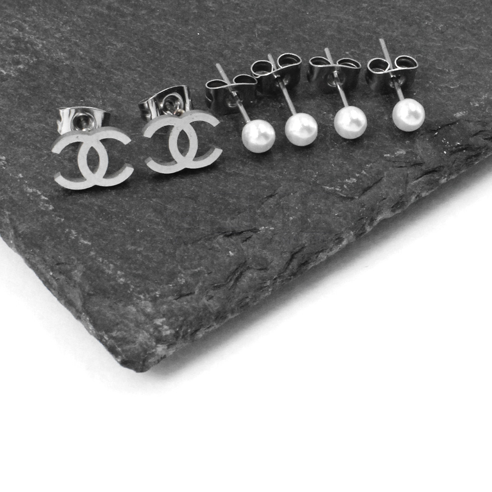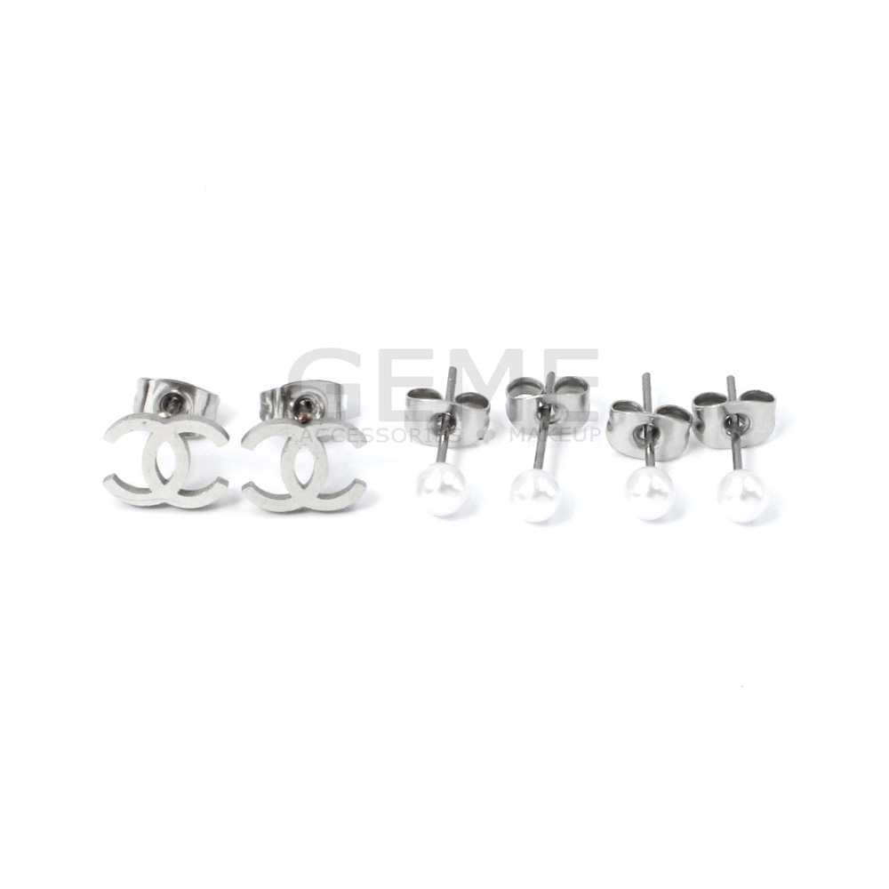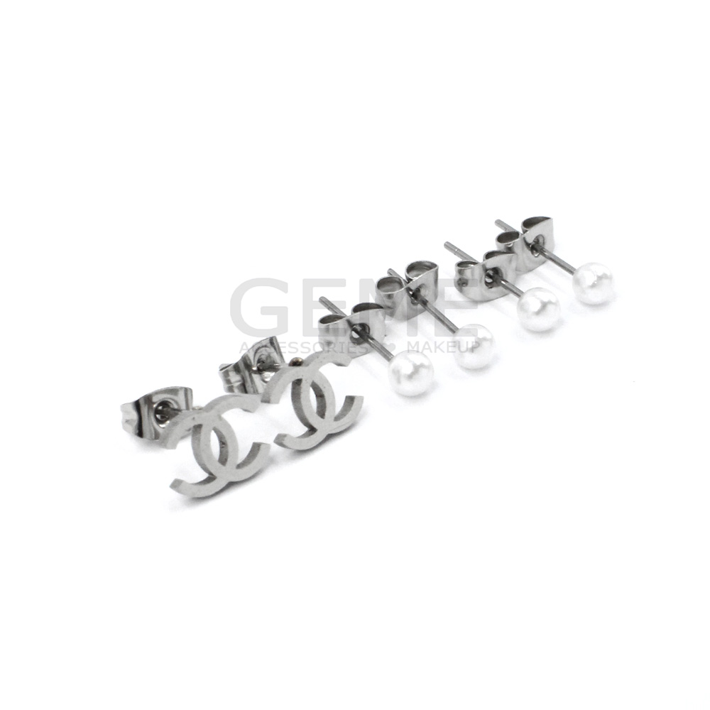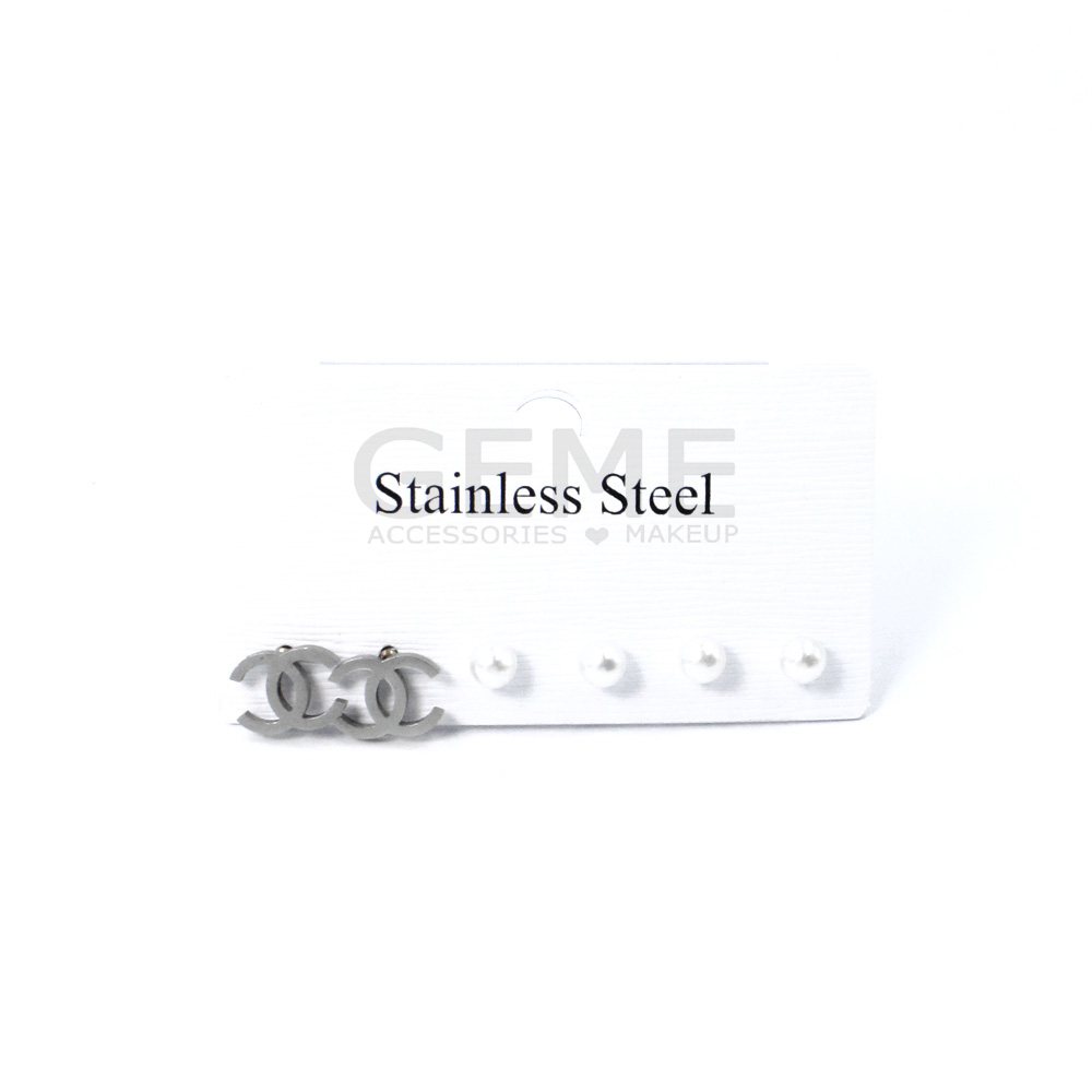 Set 3 ατσάλινα σκουλαρίκια CC - πέρλα ποσότητα