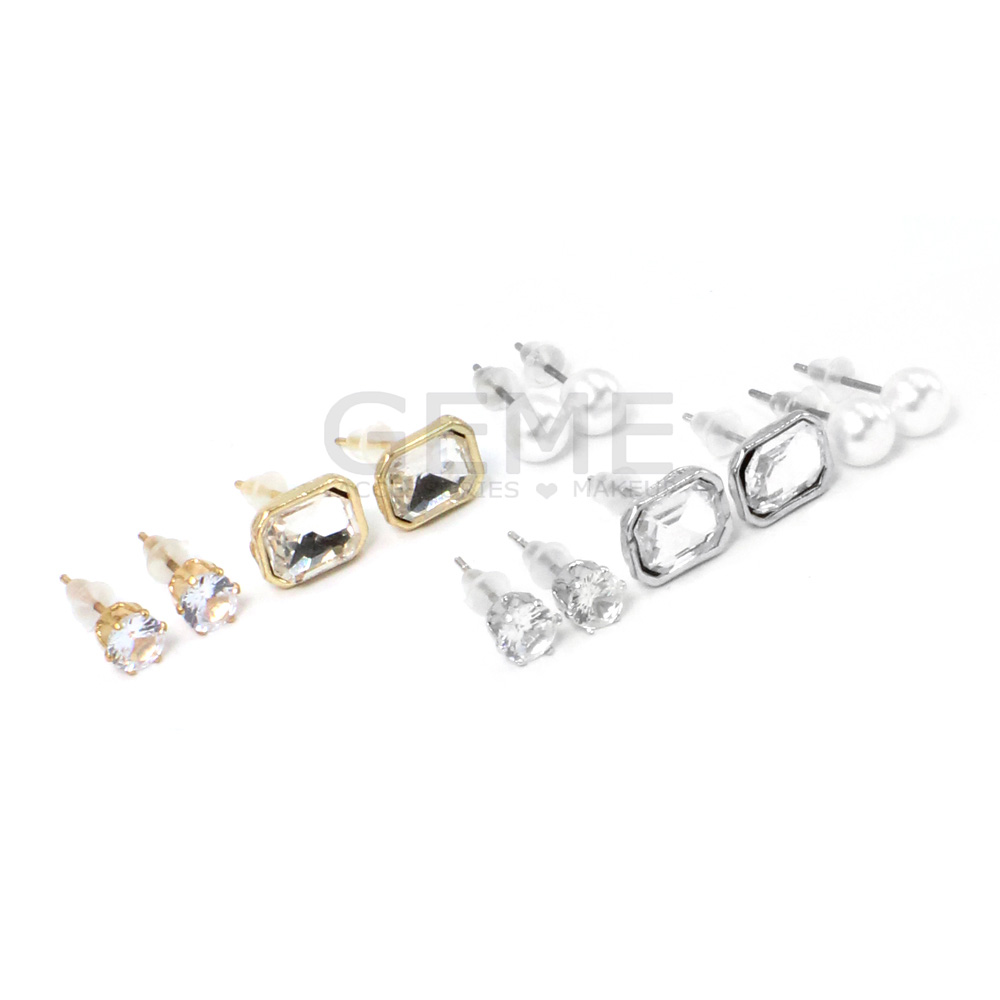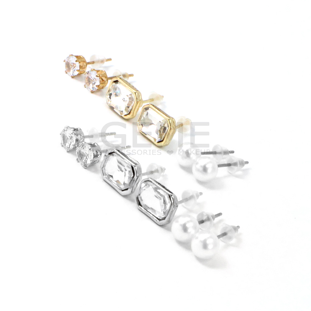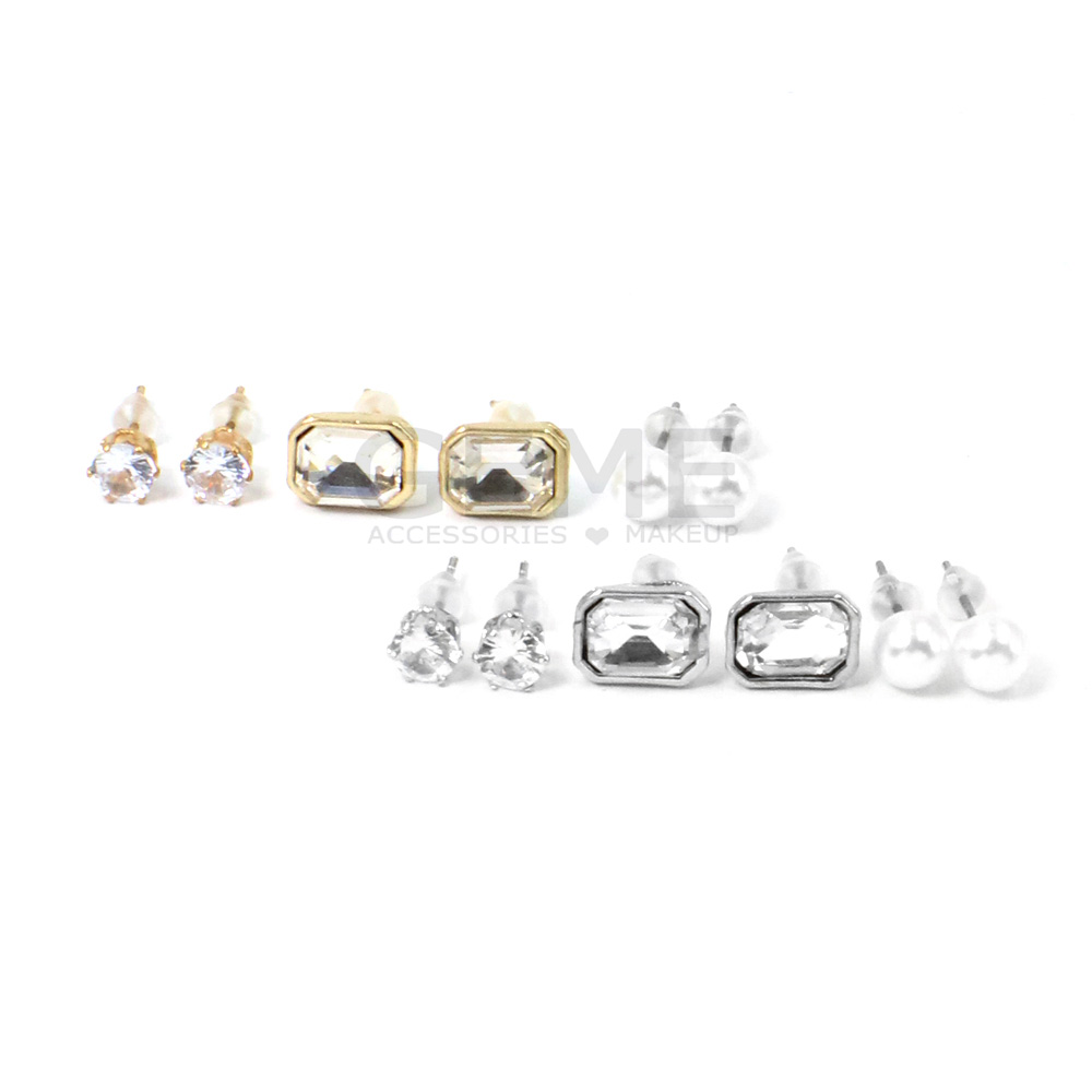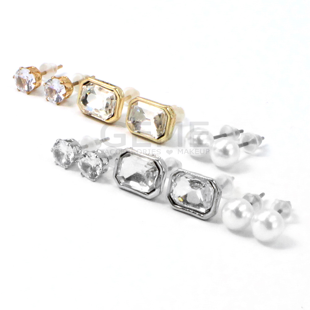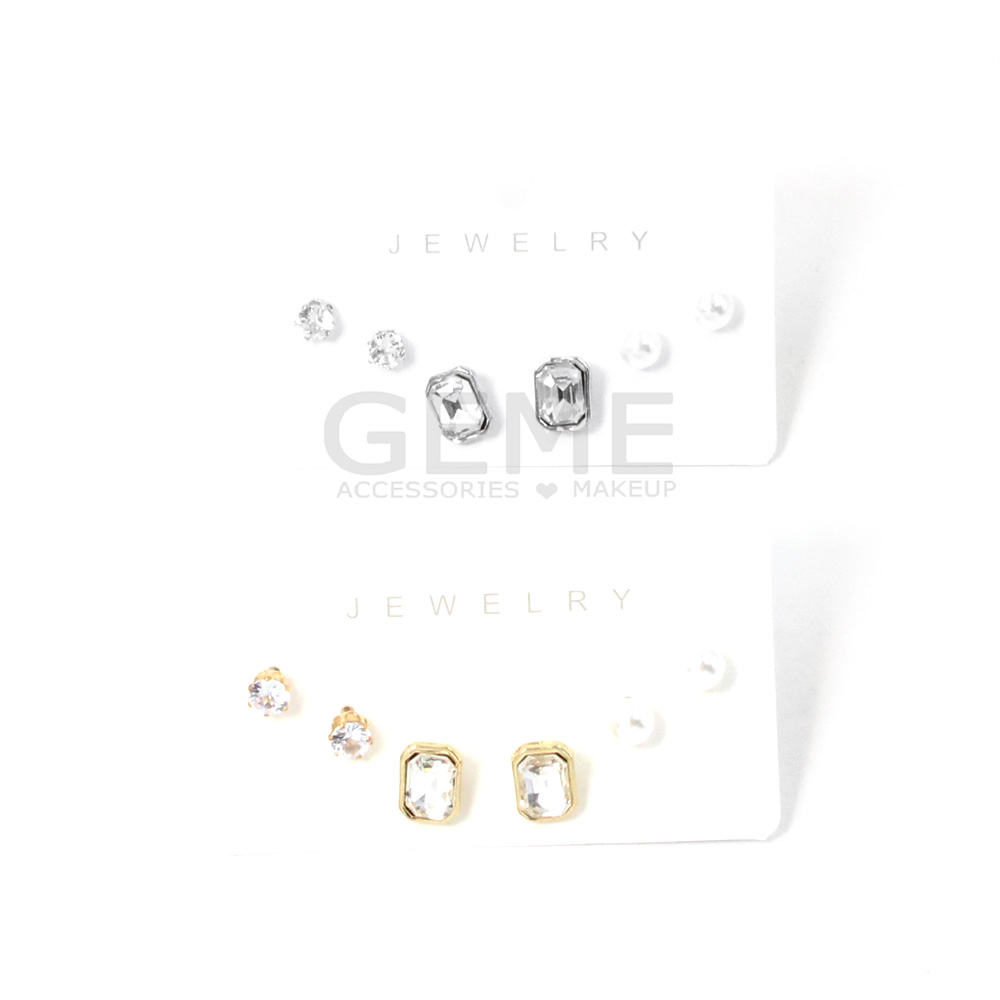 Set 3 σκουλαρίκια πέρλα - strass (ορθογώνιο) ποσότητα