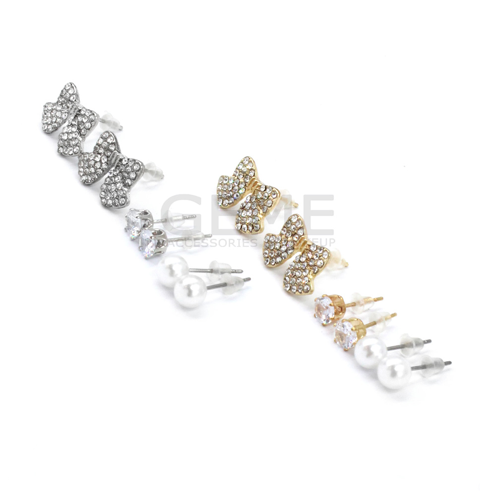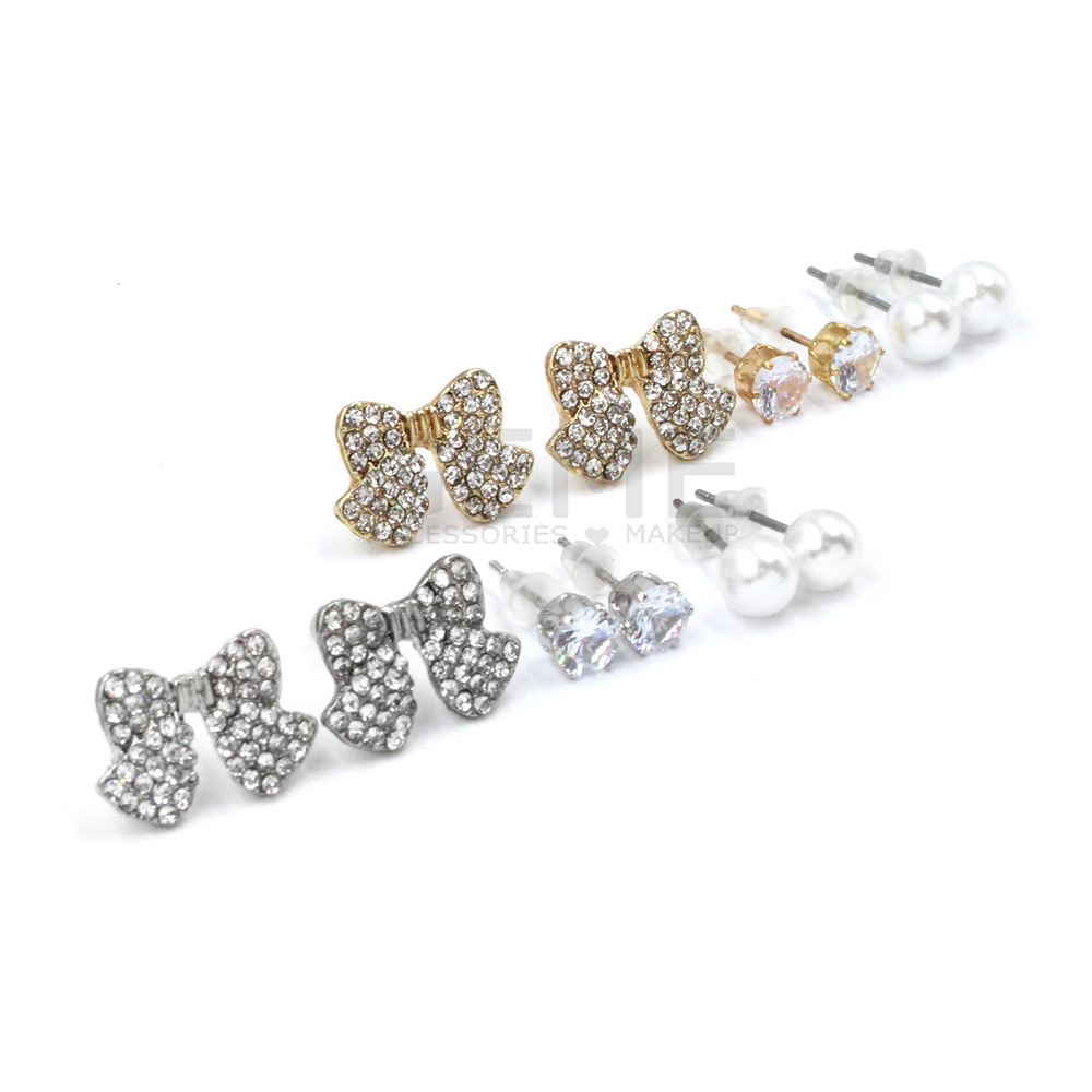 Set 3 σκουλαρίκια φιογκάκι - πέρλα - strass ποσότητα